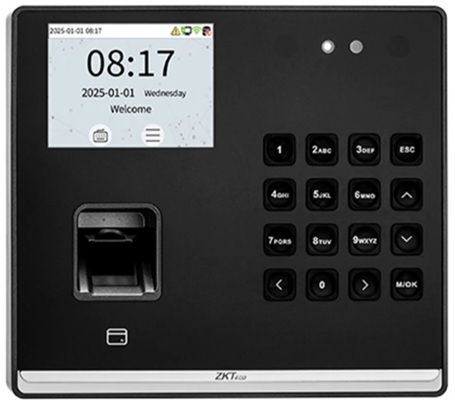 CONTROL ASISTENCIA Autenticación múltiple: huella, tarjeta (125kHz o 13.56 MHz), o contrasena Conectividad Wi-Fi 2.4GHz para sincronización con la nube Actualización de firmware en línea desde el propio menú Sistema Linux optimizado para bajo consumo y alto rendimiento Capacidad para 500 usuarios, huellas y tarjetas Hasta 100,000 registros de eventos 12 MESES GARANTIA |